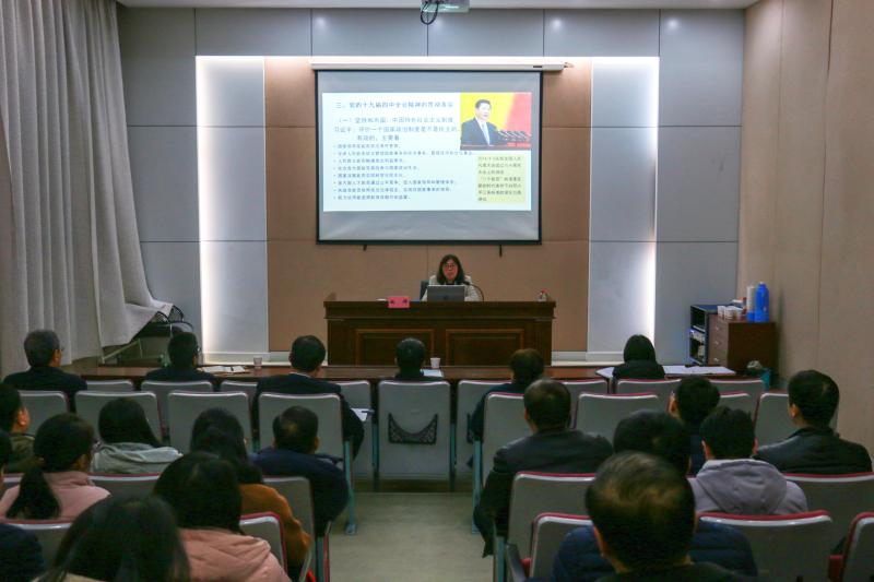魏群教授圍繞黨的十九屆四中全會召開的時代背景、全會《決定》的體系內容、全會精神的貫徹落實三個方面,深入闡釋了黨的十九屆四中全會的重大意義,闡述了中國特色社會主義制度和國家治理體系的顯著優勢,對全會《決定》提出的總體要求、總體目標和重點任務進行了系統解讀,對如何貫徹落實黨的十九屆四中全會精神進行了具體指導。宣講報告聚焦重點和關鍵,內涵豐富、系統全面,深入淺出、鮮活生動、論述精辟,參加宣講報告會的黨員同志深受啟迪,倍受教育。